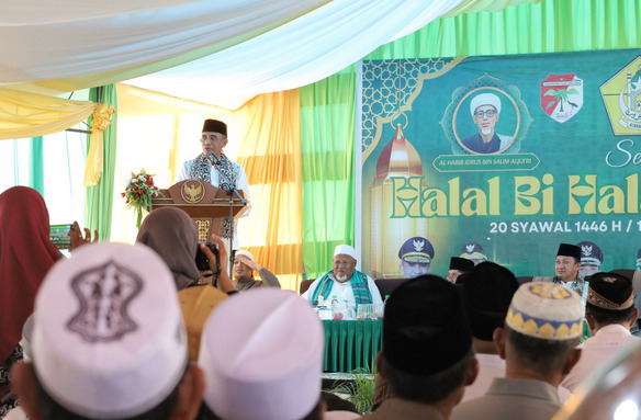 RajawaliPost, TOUNA – Gubernur Sulawesi Tengah, Anwar Hafid, bersama Ketua TP-PKK Sulawesi Tengah Sry Nirwanti Bahasoan, menghadiri acara Halal Bi Halal Akbar 1446 H Komisariat Daerah Alkhairaat Kabupaten Tojo Una-Una (Touna), yang dirangkaikan dengan Haul Guru Tua, Sabtu (19/4/2025) di Masjid Ismaratul Ukhuwwah, Touna. Acara ini juga dihadiri langsung oleh Ketua Utama Alkhairaat, Habib Sayyid Alwi bin Saggaf Aljufri, Bupati Touna Ilham S.H., Wakil Bupati Surya S.Sos., M.Si., serta mantan Bupati Touna, Mohammad Lahay, dan disambut antusias oleh ribuan masyarakat dari berbagai penjuru Touna.