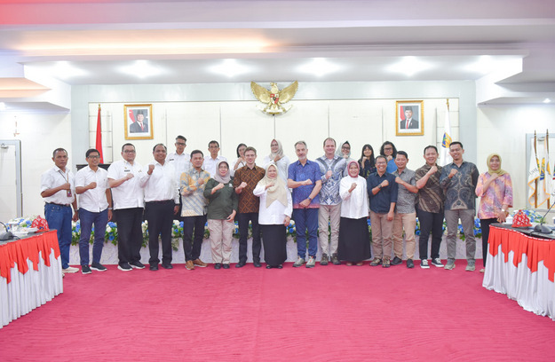 Hadir siang itu, Country Director GIZ Indonesia & ASEAN Mr. Hans Ludwig Bruns, Koordinator GIZ Sulteng Ismed Khairuddin, Kadis Bina Marga dan Penataan Ruang Dr. Faidul Keteng, S.T., M.Si., M.T, Kadis TPH Nelson Metubun, SP, dan Kadis Perindag Richard Arnaldo Djanggola, S.E., M.S.A
